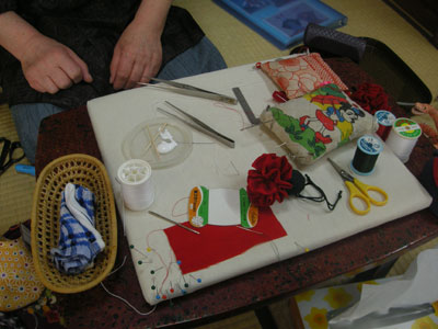 I was always interested in a small Kimono shop in Setagaya-ku (I’m not supposed to display the name…) and got very lucky: the wife of the owner, who creates amazing animals and dolls from vintage kimono fabric, showed me some ancient secrets and techniques during our morning workshop!
