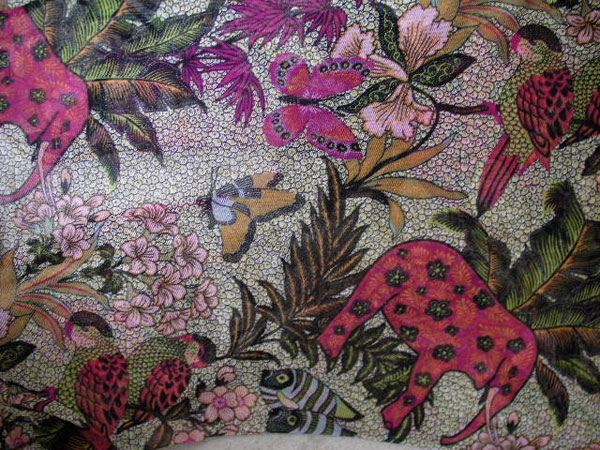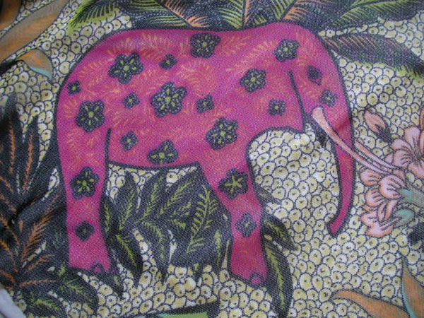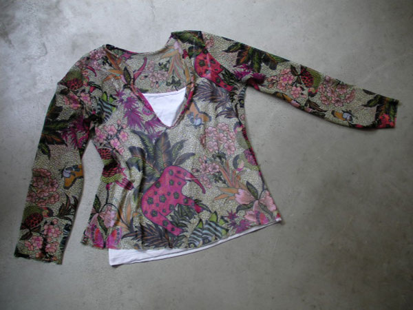 For this simple long arm shirt I used a very fine mesh that is printed with this colorful djungle images.
