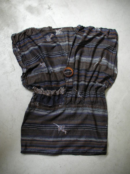 And the second top is made of a see through cotton with striped, flower and dot prints in a calm colour range. The cut is actually very easy, because the hip part, the two upper fronts and the upper back part are just rectangles that are gathered at the waist and ruffled with an elastic tape at the shoulders.