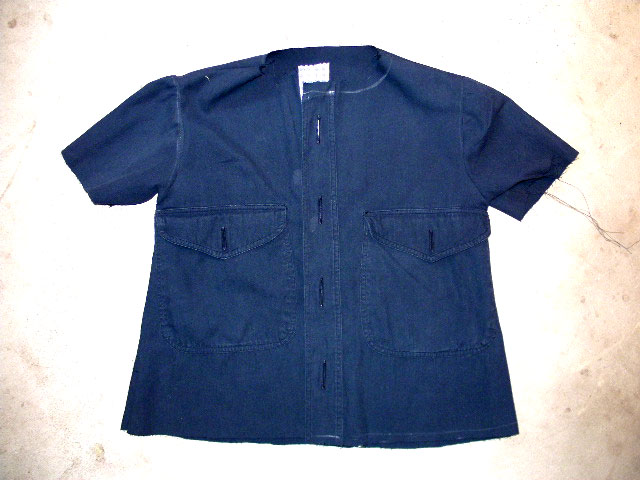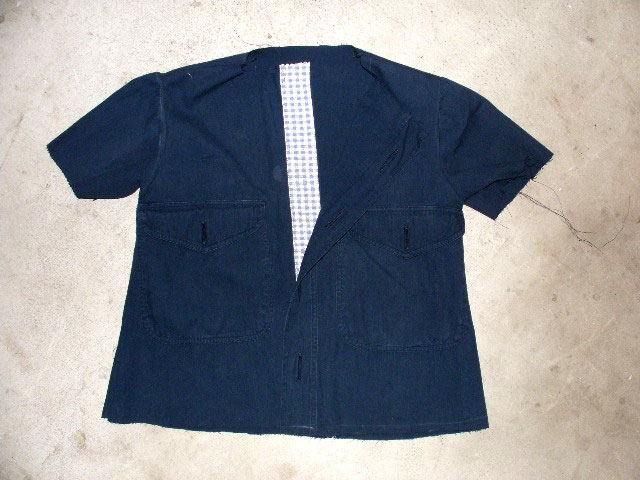 The buttons had to be cut off and little holes along the button line remained. To cover those we decided to sew down another fabric at the center front