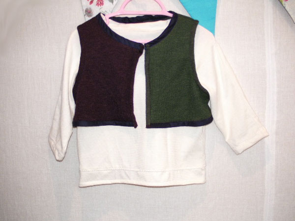 This time, cashmere vest in purple and green with all organic cotton shirt.