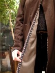 She ordered a cashmere coat in chocolate brown and really liked the coat that I made 18 months ago. I started with her costumised pattern and then we figured out that some details can make the whole piece really special. She is born in the year of the snake and an old silk kimono fabric was perfect to imitate a snake effect in between cashmere and lining fabric. Please view all of our pictures, it was really fun to work on it!