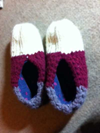We had a wonderful Winter here in Tokyo again. 40cm of snow, ths most in 20(?) years? I enjoyed cozy sewing classes, sliding down white hills with my kid and watching the flakes falling. Julie, who has been sewing for more than 18 months now, decided to grab her knitting kit and made extra thick wollen shoes for the house. The lined them with super soft jersey that we found in my fabric shelves.