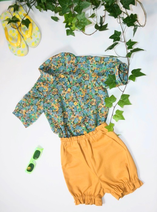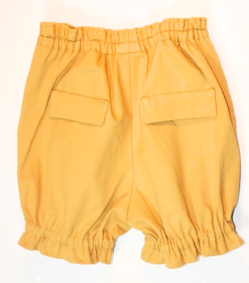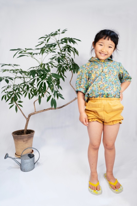 These Bloomers are the short version of the Comfy Kids Trousers. The Bloomers have a diagonal front pocket, an elastic band at the waist and legs and – this is different- two flaps at the back as an extra detail. If you are eager to try something new, you might want to practise velt pockets on this bloomers 🙂