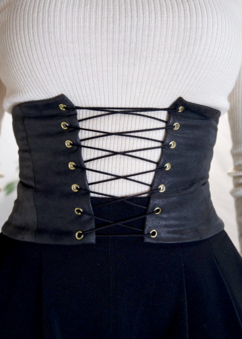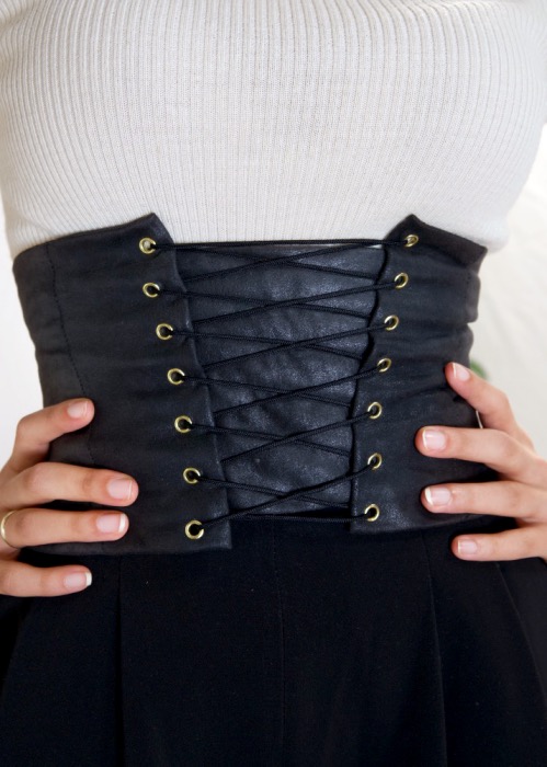 Over dresses, shirts, sweaters, T-Shirts and tops: this Corset Belt is a fun accessory to accent and improve your slender waist. It can be worn with and without the cover behind the corset strings.