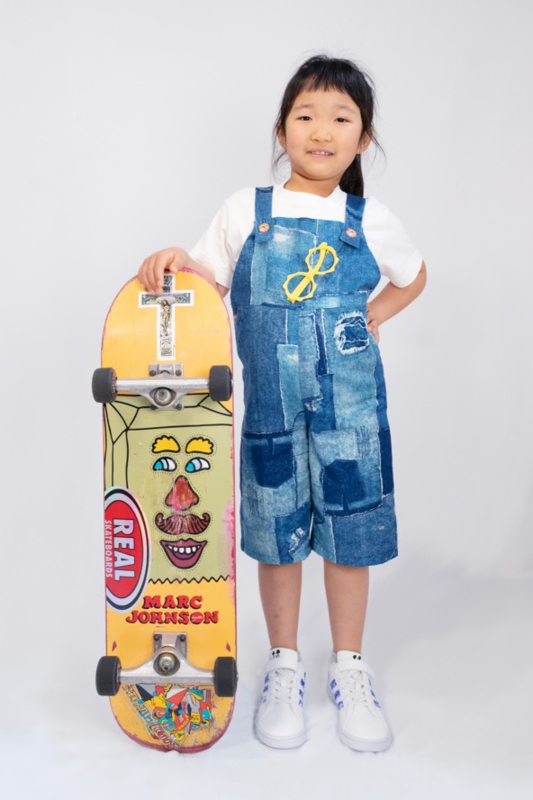 Very cool Ollies and Heel Flips can be done in this comfy dungarees! The trousers open on the side with buttons. The shoulder straps are held with buttons, too. Front pockets are on both sides.