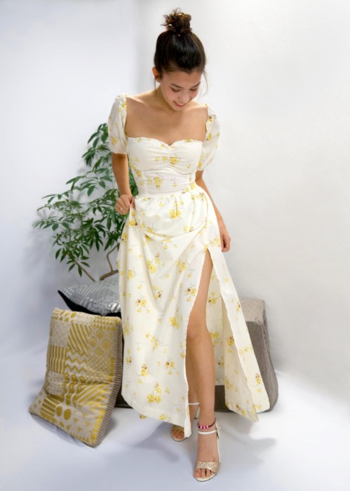 Did you see “Bridgerton” on Netflix? When the first season came out and my interns and me made a plan for this collection the first season had just started and everyone was talking about it…. Reason enough to make one dress that “reminds” of that style. (even though it isn’t exactly the same). Thanks you, Ruby Barker! You looked amazing in all of your dresses and we named this one after you!