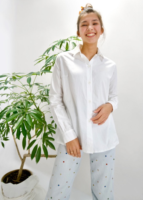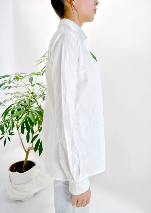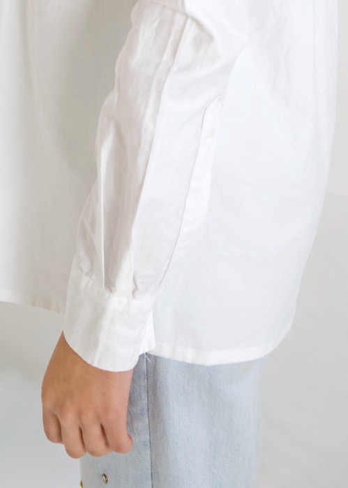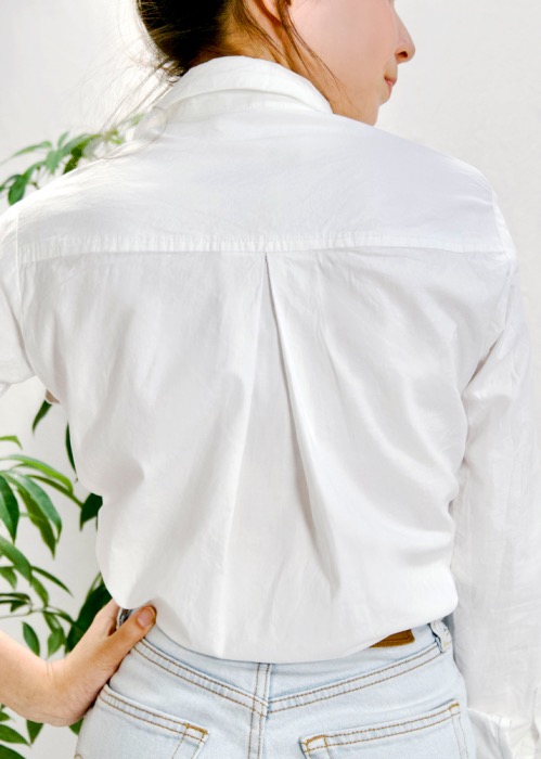 A must in every closet ! This White Shirt is sewn with a deep center pleat at the back, starting from a perfectly fitting yoke over the shoulders. The sleeves are in a slim fit, without being tight. Collar and cuffs are interesting to try out- even for beginner sewists!